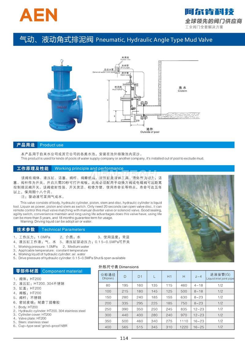 气动液动角式排泥阀 J744X/644X