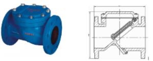该阀由阀体、阀盖、阀瓣和弹簧等组成,主要用于给排水系统、石油、化工等工业部门的管道出口处,防止介质逆流。由于本产品的封圈采用倾斜设计,关闭时间短,可减少水锤压力。阀瓣采用丁腈橡胶与钢板经高温压制而成,耐冲刷,密封性能好,产品结构简单、保养、维修、运输均很方便。